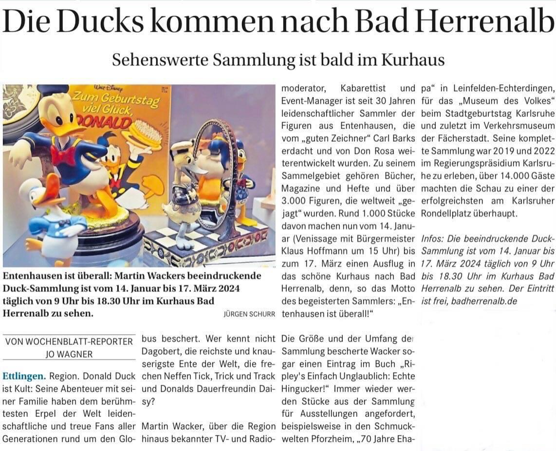 Nächste große Duck-Ausstellung: Nächste Ausfahrt Bad Herrenalb! Veröffentlicht am 26. Februar 2024 von martin